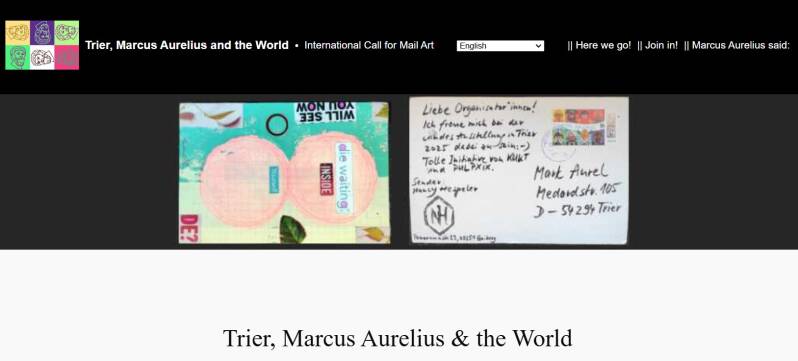 The piece will be exhibited as part of the large state exhibition on Marcus Aurelius in Trier, Germany 2025. The two art associations KUKT - Culture and Art Association Trier and PULP.XIX are organizing the international mail art project on Marcus Aurelius, the great Roman emperor from the 2nd century AD. His texts are more modern,